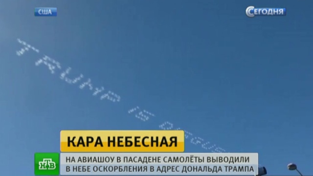 В США предвыборная борьба вышла на новый уровень. В Калифорнии во время авиашоу на ежегодном Параде роз зрители наблюдали в небе надписи, оскорбляющие миллиардера Дональда Трампа лидера гонки среди республиканцев. ntv.ru »