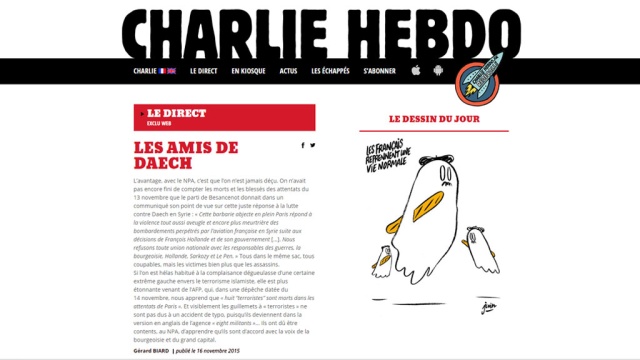 Charlie Hebdo опубликовал карикатуру на теракты в Париже