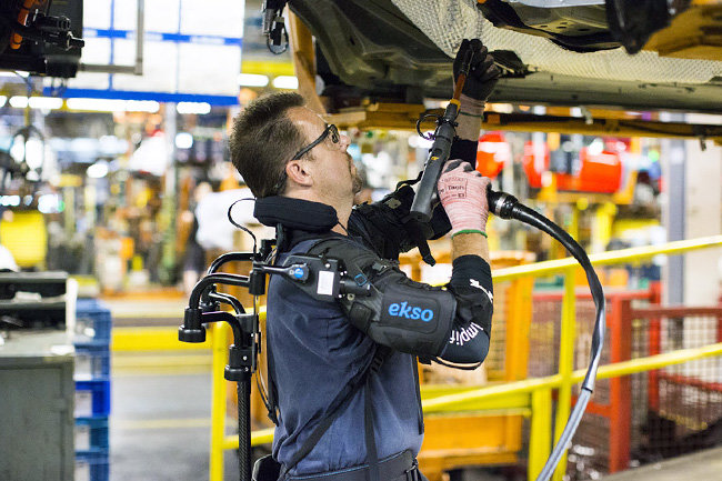 На сборочных линиях компании Ford в США рабочие тестируют экзоскелет EksoVest для верхней части тела, который помогает снизить утомляемость и уменьшить вероятность травмы при выполнении операций над головой. infox.ru »