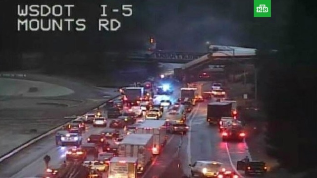 Пассажирский поезд железнодорожной компании Amtrak сошел с рельсов и упал с эстакады на оживленную магистраль в американском штате Вашингтон, недалеко от Сиэтла. ntv.ru »