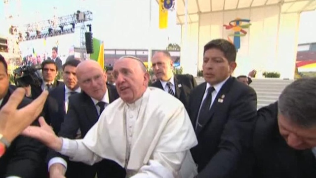 Обезумевший фанат дважды уронил папу римского на инвалида: видео