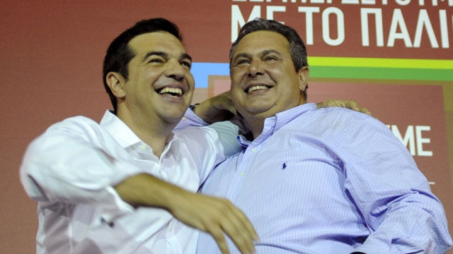 Лидер победившей на внеочередных парламентских выборах партии СИРИЗА заявил, что он сформирует правительство Греции в коалиции с правой партией «Независимые греки». Выступая перед тысячами сторонников в центре Афин, Ципрас заявил, что еще раз объединит свои силы с лидером «Независимых греков» Паносом Камменосом. Лента.Ру »