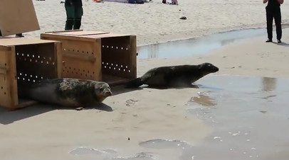 Сотрудники Калининградского зоопарка выпустили в море двух спасённых балтийских тюленей. Молодой самец, найденный на берегу у посёлка Отрадное, был сильно обезвожен, истощён, ранен и весил всего 11 кг. rt.com »