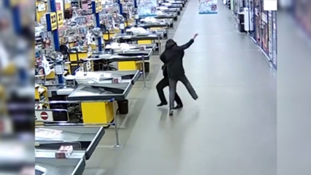 Покупатель с топориками напал на охранника в петрозаводском гипермаркете: видео